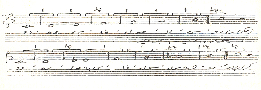 Lakin burası məlumdur ki, Qərb millətləri ülum, fünun və sənayein hər birində tərəqqi və təalicə Şərq millətlərindən iləri olduqlarından, sənayei-nəfisə qismindən olan musiqi tərəqqisində dəxi bizim kibi millətləri ağac-ağac ötüb, bu sənəti dərəcəyi-mükəmməlliyə yetiribdirlər.