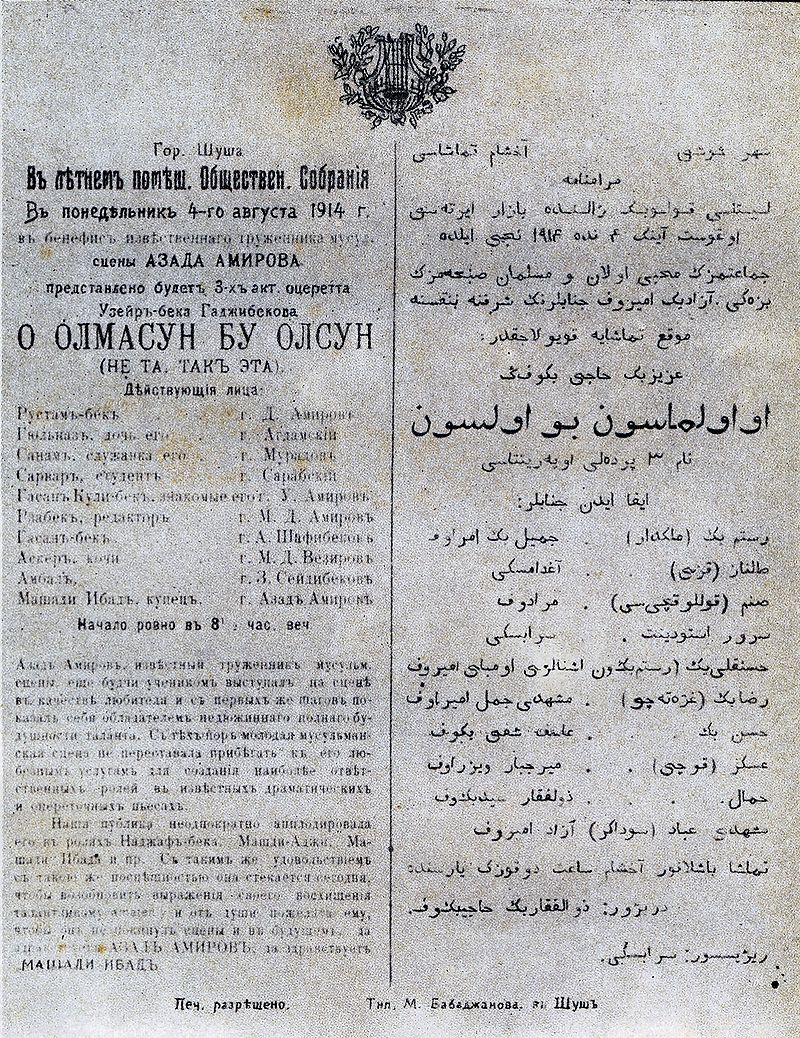 Üzeyir Hacıbəylinin «O olmasın, bu olsun» musiqili komediyası bu gün də tamaşaçılar tərəfindən böyük rəğbətlə qarşılanır.