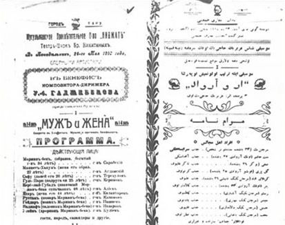 "Uzeyir Bey Hajibeyov, composer of the operas "Leyli and Majnun" and "Sheikh Sanan," has composed and written a new operetta—his third piece in this field. The operetta is titled "Husband and Wife." Its plot is humorous and morally instructive. The music is written for orchestra. Just as "Leyli and Majnun" was the first Muslim opera, "Husband and Wife" is the first Muslim operetta. While musically simple, it requires strong comedic performance skills."